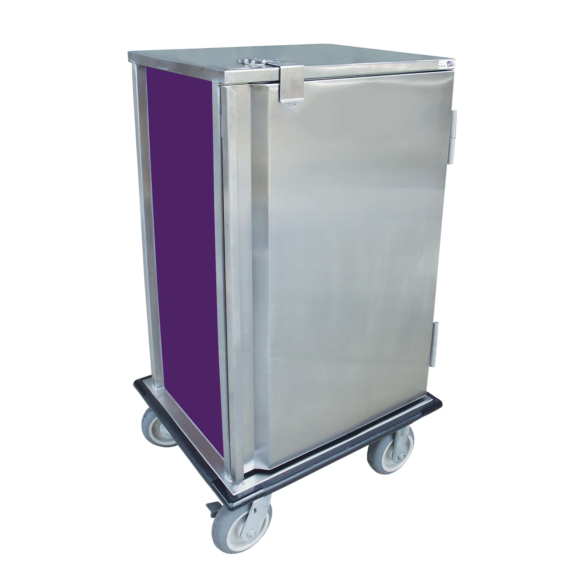 Choice Room Service Carts by Alluserv/Lakeside are designed for transporting trays in units to provide room service style meals. The Alluserv/Lakeside RS9A Choice Room Service Carts promotes allergen awareness and has a 9 tray capacity. Its purple handles signify allergen awareness for enhanced food safety. This cart is constructed entirely of stainless steel for superior durability and easy cleaning, featuring fixed tray slides with 5-5/8" spacing for optimal tray organization. It comes equipped with a full-length pull door handle for easy access. This room service cart features decorator color and textured side panels with customizable laminate options. It includes a transport latch and magnets to ensure safe and secure transportation. This cart is designed with a compact footprint to save space. It accommodates 14” x 18”, 15” x 20”, and smaller room service trays for versatile use. This cart is fitted with 6” casters, including 2 with brakes for stability and mobility. Includes two year parts and one year labor warranty. NSF listed. Made in the USA.