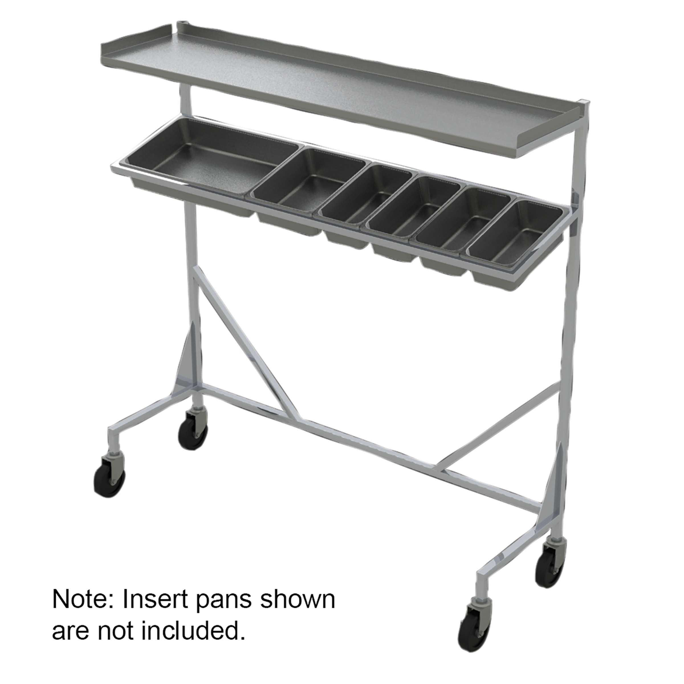 Alluserv/Lakeside Starter Stations are designed to provide a convenient and organized method of storing and dispensing those basic items necessary for patient meal assembly. The Alluserv/Lakeside SS72CS Starter Station features a cantilever design and measures 6 feet in width. This station is built with all-welded stainless steel construction for unmatched strength and reliability. It conveniently holds tray make-up items within easy reach, enhancing workflow efficiency. Its top shelf features a 15-inch depth, providing ample surface space for your needs. The cantilever design enables easy roll-up access to the conveyor for seamless operation. This station's rack frame holds a variety of pans (not included), including 3 full-size 12" x 20" pans and 1-1/3-size pan to fit your needs. Equipped with quiet 5-inch swivel-tread casters, including 2 with brakes for secure positioning. Comes with two year parts and one year labor warranty. NSF listed. Made in the USA.