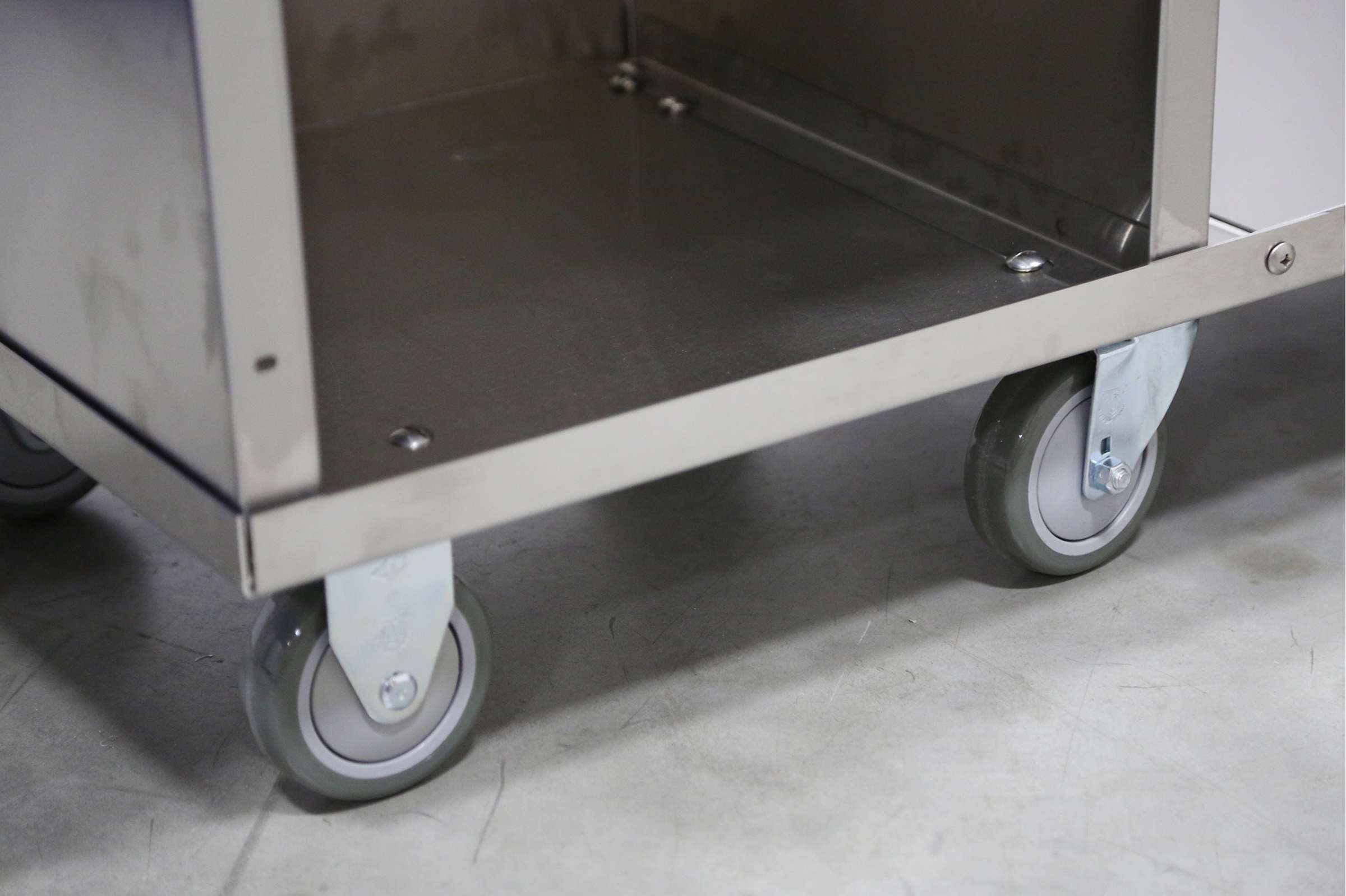 - 4 ea. 4" no-mark swivel casters, 2 ea. fixed allow cart to smoothly maneuver around tight spaces and uneven surfaces.