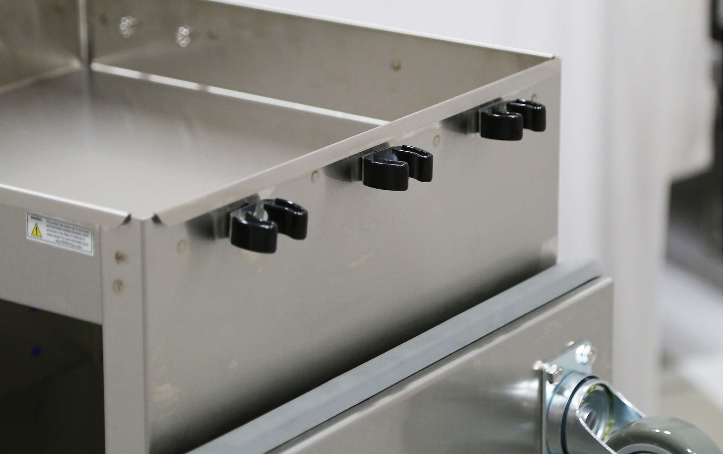 - 3" deep recessed tray allows for secure storage of cleaning supplies while keeping them easily accessible.
