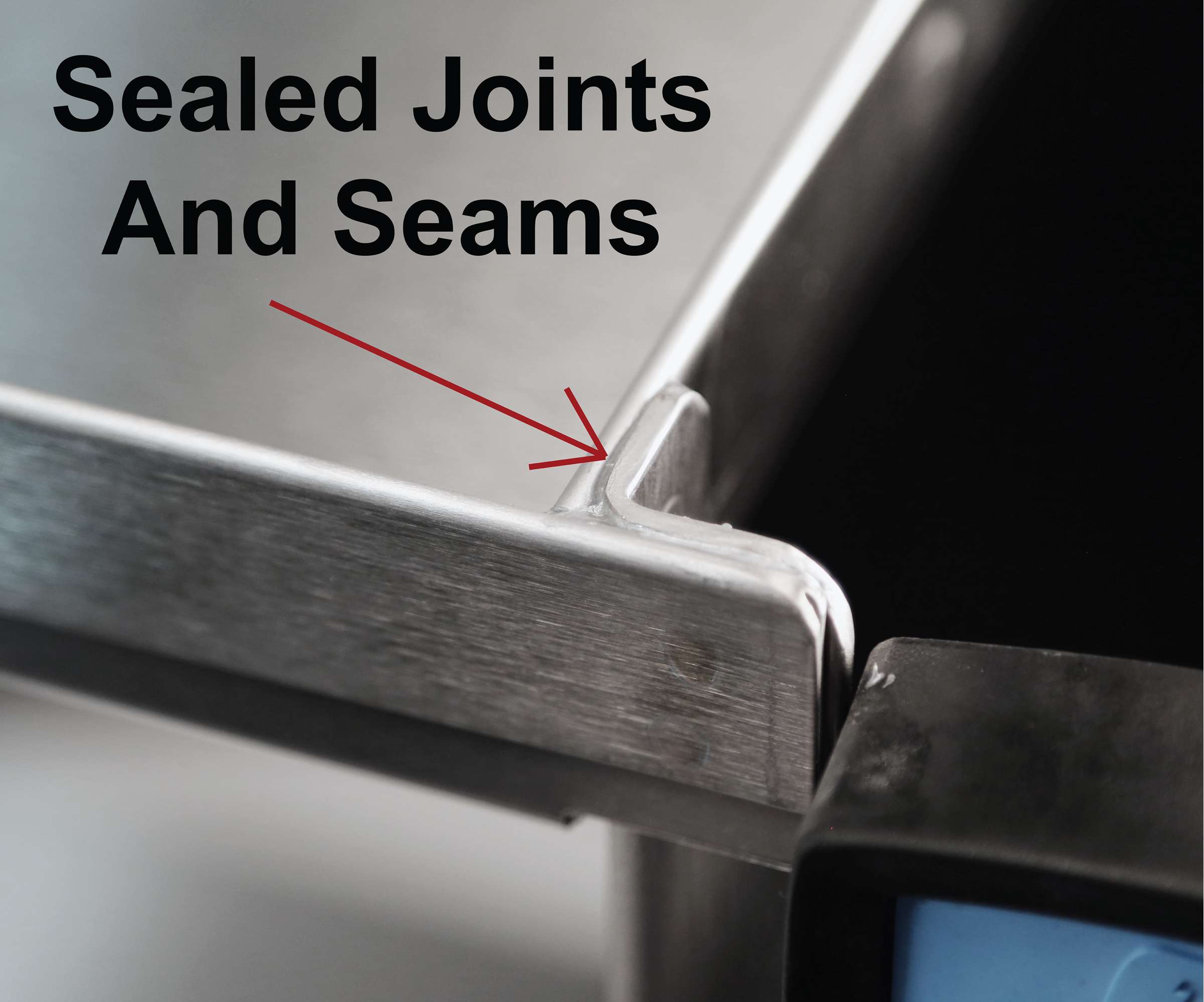 Product Specification: Unit shall be of fully welded stainless steel construction. Legs and frame shall be of U-frame design, eliminating the need for corner reinforcements. Leg frames shall be 11-gauge angle stainless steel. Shelves shall be of 18-gauge stainless steel and shall be welded to vertical leg frames. Shelves shall be double hemmed on all four edges for extra rigidity. Unit shall have two each 5" (127 mm) diameter extra-load swivel casters with 1-1/4" (32 mm) wide non-marking polyurethane wheels, and two each 8" diameter extra-load wheels mounted to a fixed axle. Swivel casters shall be plate type and shall be bolted to an 18-gauge 5" (127 mm) wide stainless steel cross member with a galvanized reinforcement. Unit shall have push handle made of 18 gauge 1" O.D. stainless steel tubing. Handle mounting brackets shall be welded to vertical leg frame. Unit shall have two each bumpers mounted to handle ends and two each 6" (152 mm) vertical bumpers riveted to front legs.