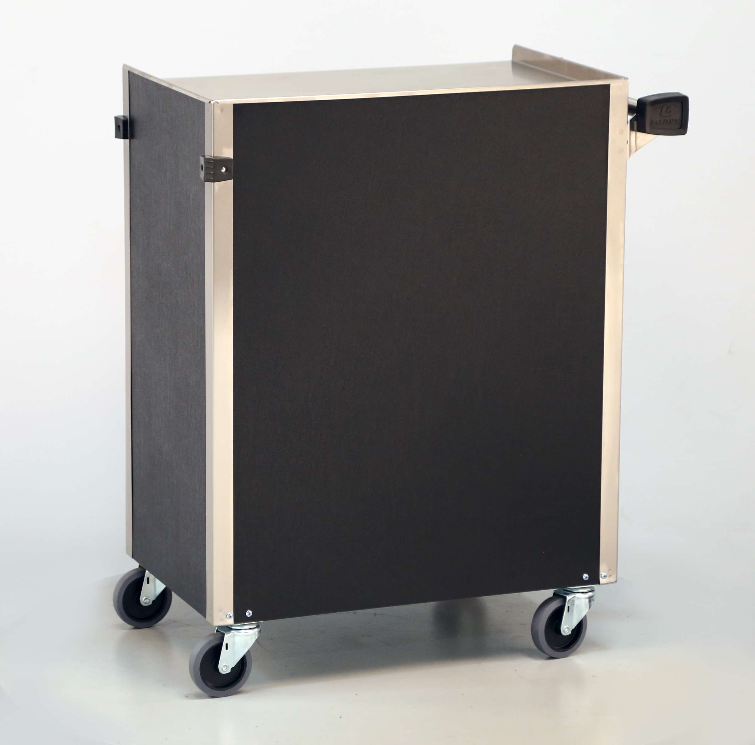 Enclosed Bussing Carts by Lakeside Manufacturing transport and store while keeping items hidden out of sight. The Lakeside 615 Enclosed Bussing Cart with (4) shelves measuring 15-1/2" x 24" has a weight capacity of 300-Lb. This Lakeside bussing cart holds up to three standard 15” x 20” (381 x 508) bus boxes inside and one on the top for increased capacity. Its stainless steel interior prevents odor retention from spills. This Lakeside cart on wheels is outfitted with an all welded angle leg construction is durable and easy to clean and sanitize. Its reinforced 22-gauge stainless steel shelves absorb stress from frequent load drops. The 615's top shelf has (3) shelf edges up, (1) down to hold items in place during transport. Choose from a variety of popular vinyl and laminate finishes to match your décor and impress your guests. The dependability of stainless steel with a smartly styled exterior finish combines the best of both worlds. Endless variation and product features. Industry leading ship times. Lakeside is proudly made in the USA!