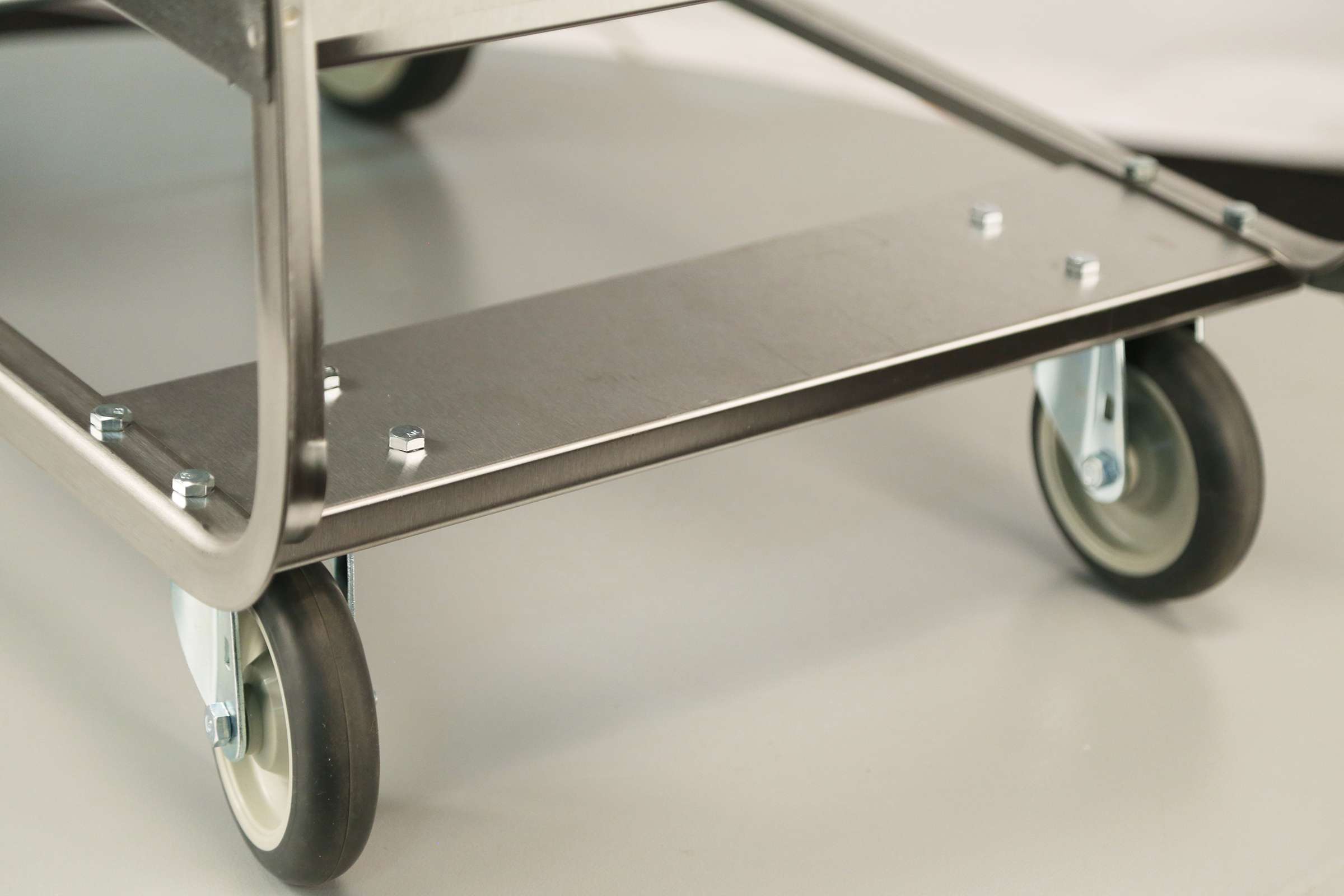 The "Insulated Soup Pot Cart" was based on the Lakeside 543 Stainless Steel Utility Cart. It was designed to hold up the weight capacity, daily usage, and distance traveled to serve large volumes of bulk food for a non-profit meal delivery program.
