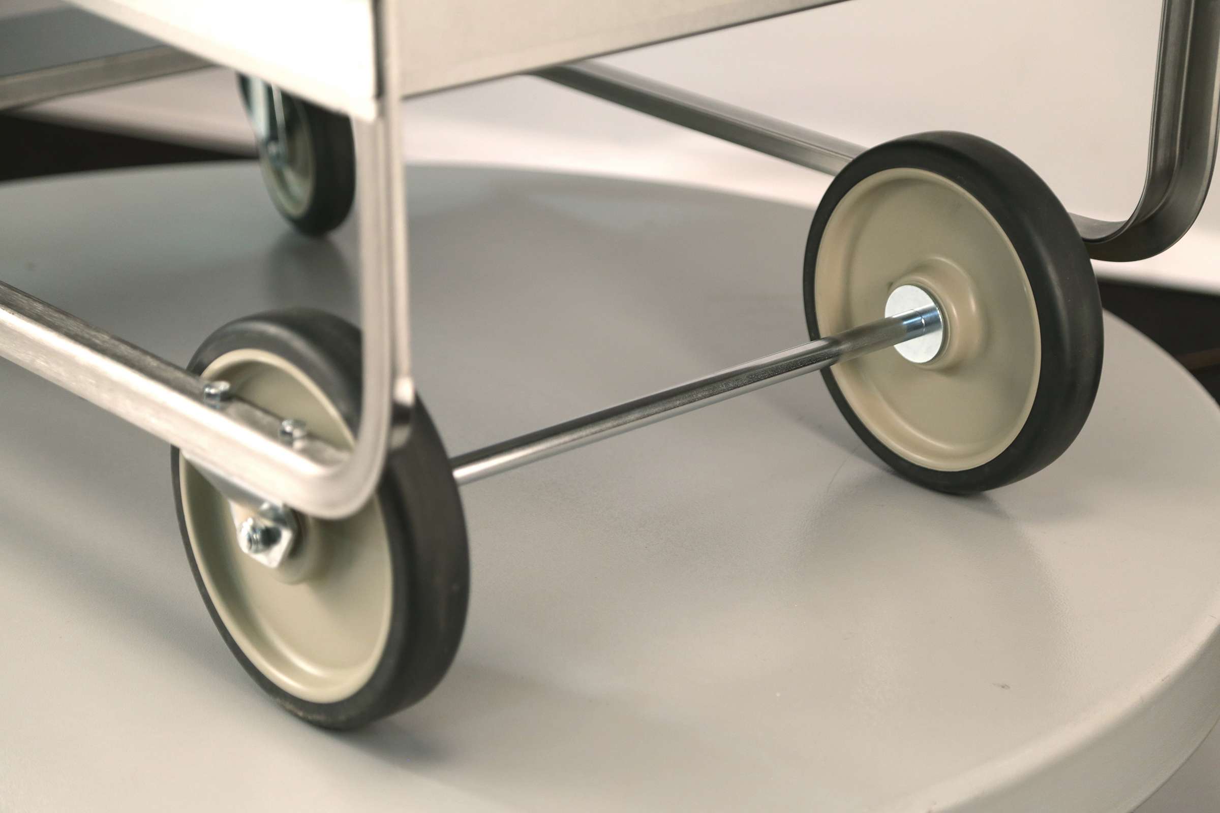 - No-mark, extra load, cushion tread wheels absorb impact, reducing vibration and strain.