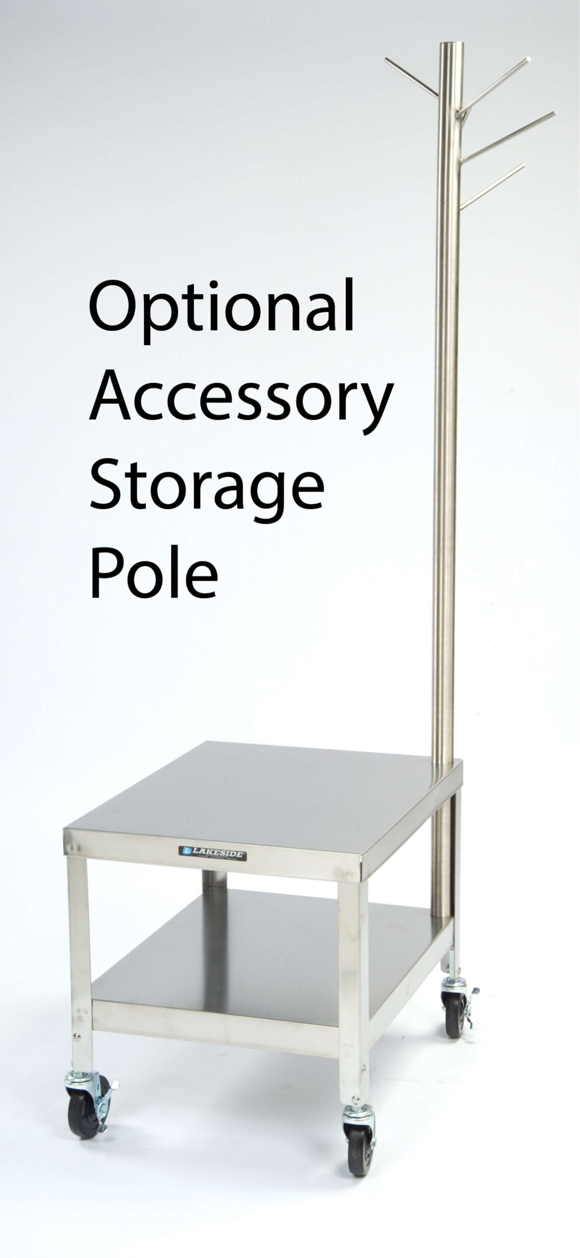 Dedicated machine stand for heavy-duty kitchen equipment with this mobile stand. The Lakeside 718 Mobile Machine Stand has a height of 29 3/16-in and (2) 24 x 32-in Shelves with a capacity 375-Lb. The 18 gauge reinforced stainless steel top withstands rigorous work environments. This unit was designed to securely hold many types of kitchen equipment. The lower shelf accommodates accessories and other supplies. This model has a stainless steel construction that is easy to clean and sanitize. Optional adjustable feet create a stationary stand. Nobody beats Lakeside’s lead times. Made in the USA.