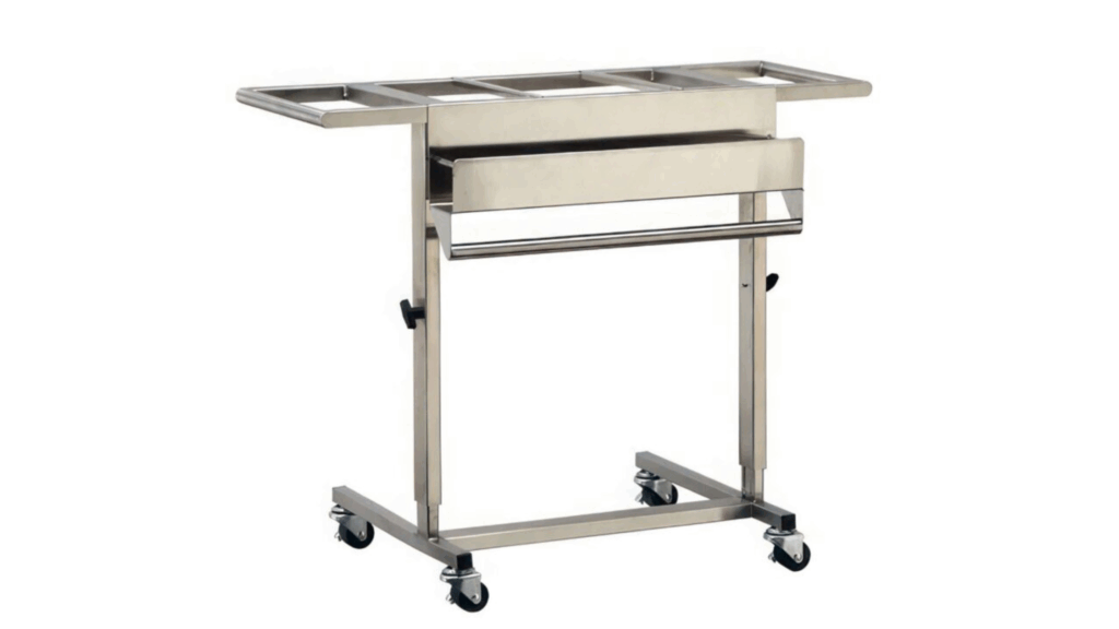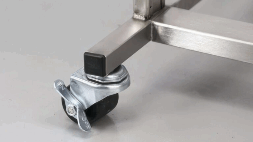 All models feature all-swivel casters for smooth, effortless mobility throughout the kitchen. Model 140 includes a cantilevered H-base with smaller casters that easily roll under ranges, along with an adjustable-height top for personalized prep comfort.
