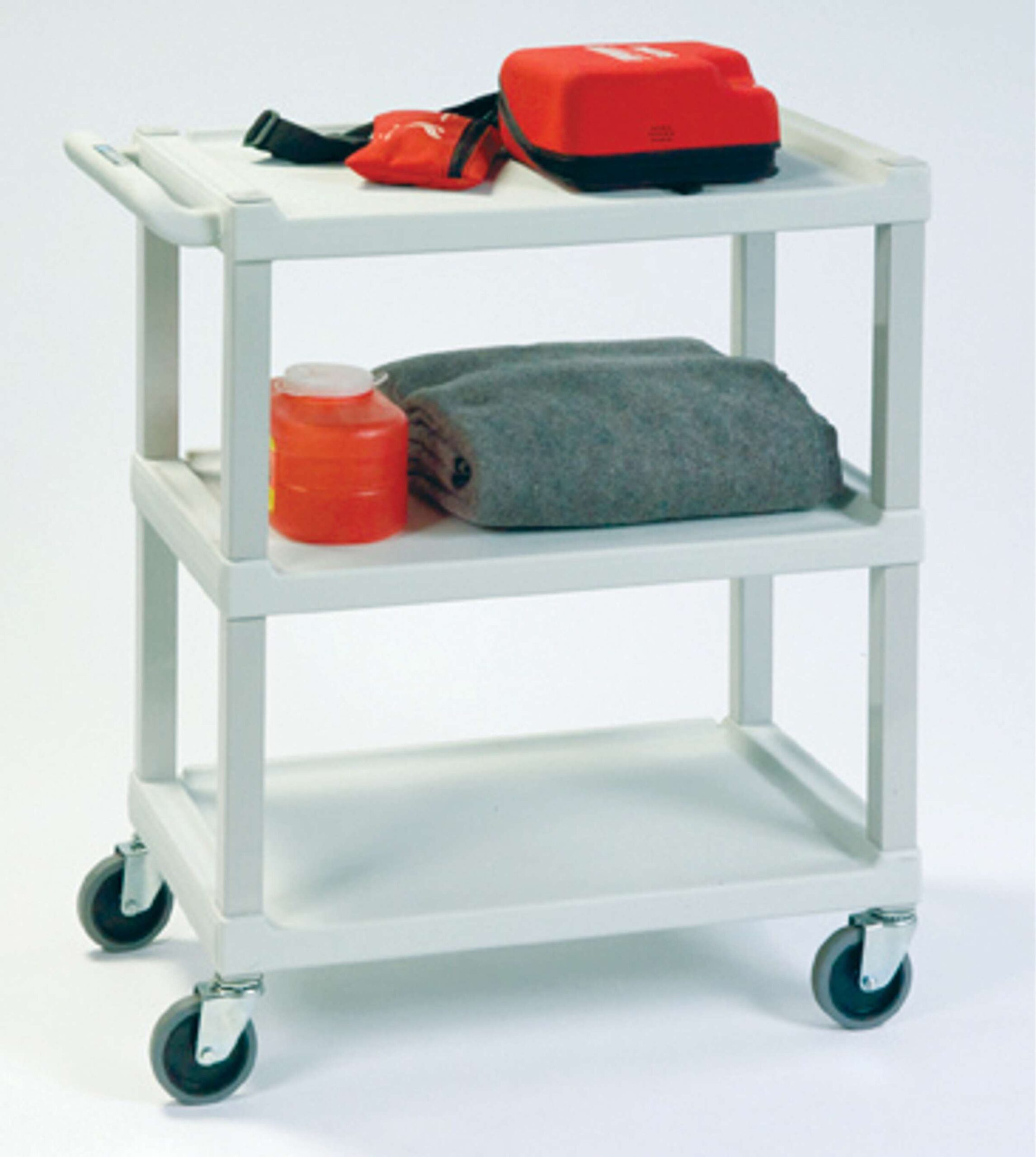 Contemporary, economical plastic carts make for an easy transportation of medical supplies and equipment.