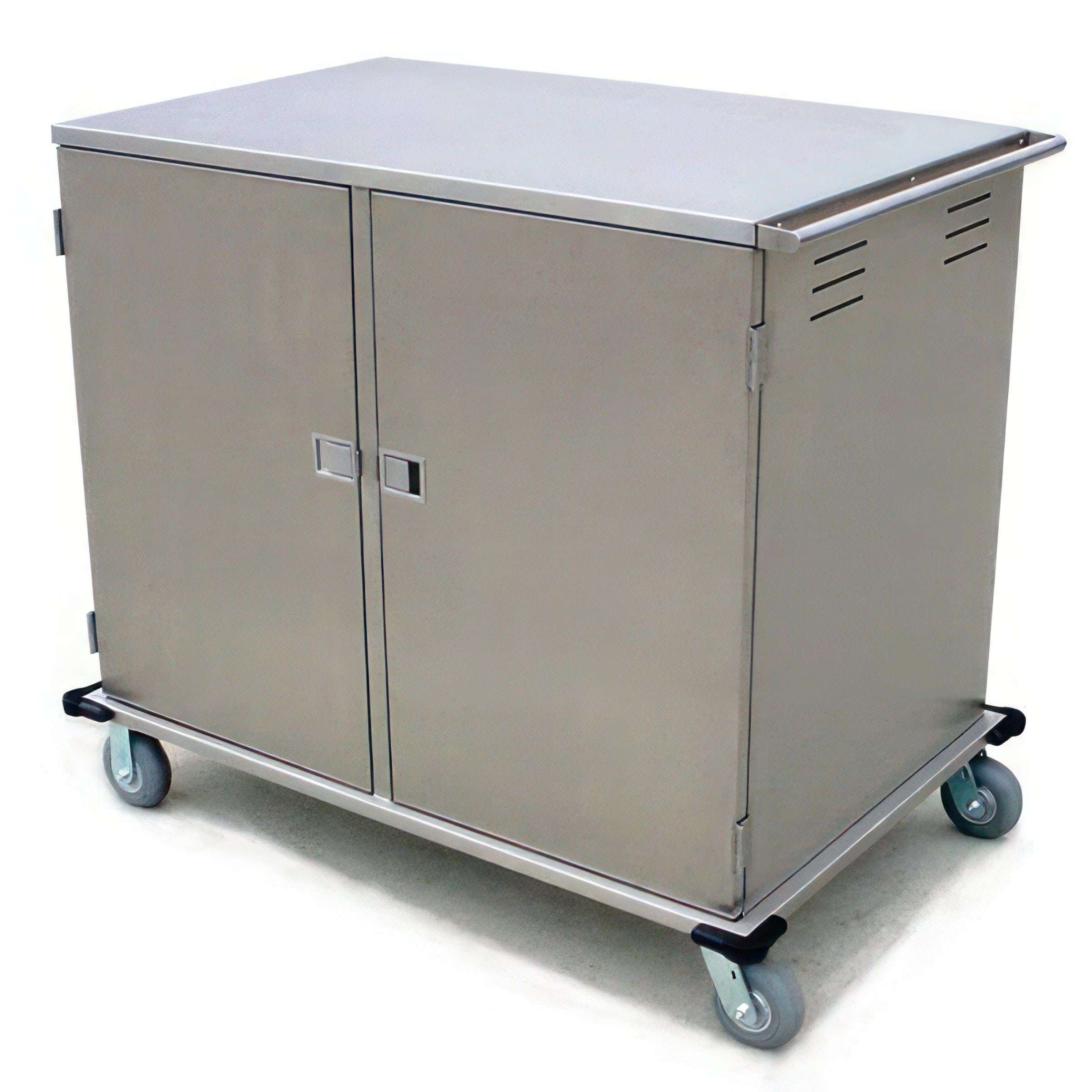 Elite Series Low Profile Tray Delivery Carts by Lakeside Manufacturing quickly delivers just the right number of meals with this durable cart. The Lakeside 5624 is NSF with a (24) tray capacity. This cart has a stainless steel cart body and removable ladder-style ledge panels that are durable and easy to clean. The vented side panels avoid heat and condensation build-up inside the cabinet. Accommodates both 14" x 18" and 15" x 20" size trays with (2) trays per ledge. Doors open 270° for unobstructed access and features (2) individual compartments. The 5624 has (2) fixed and (2) swivel 6" (152) Lake-Glide casters guide the cart in a straight line, while making turns easier. Fastest in industry lead times from Lakeside’s factory in the USA.