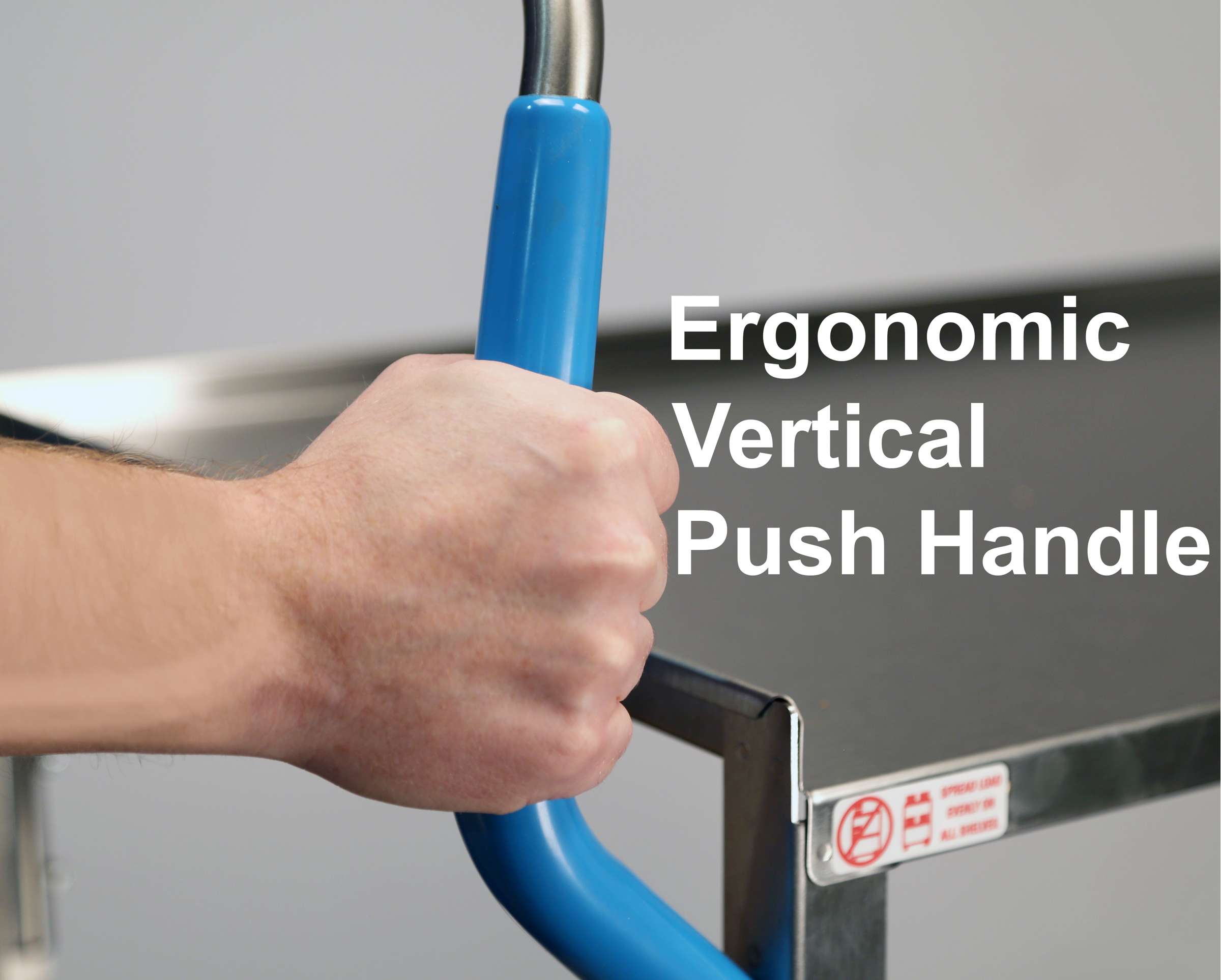This ergonomic cart with vertical handles features a safety zone designed to accommodate the human body during loading and unloading.