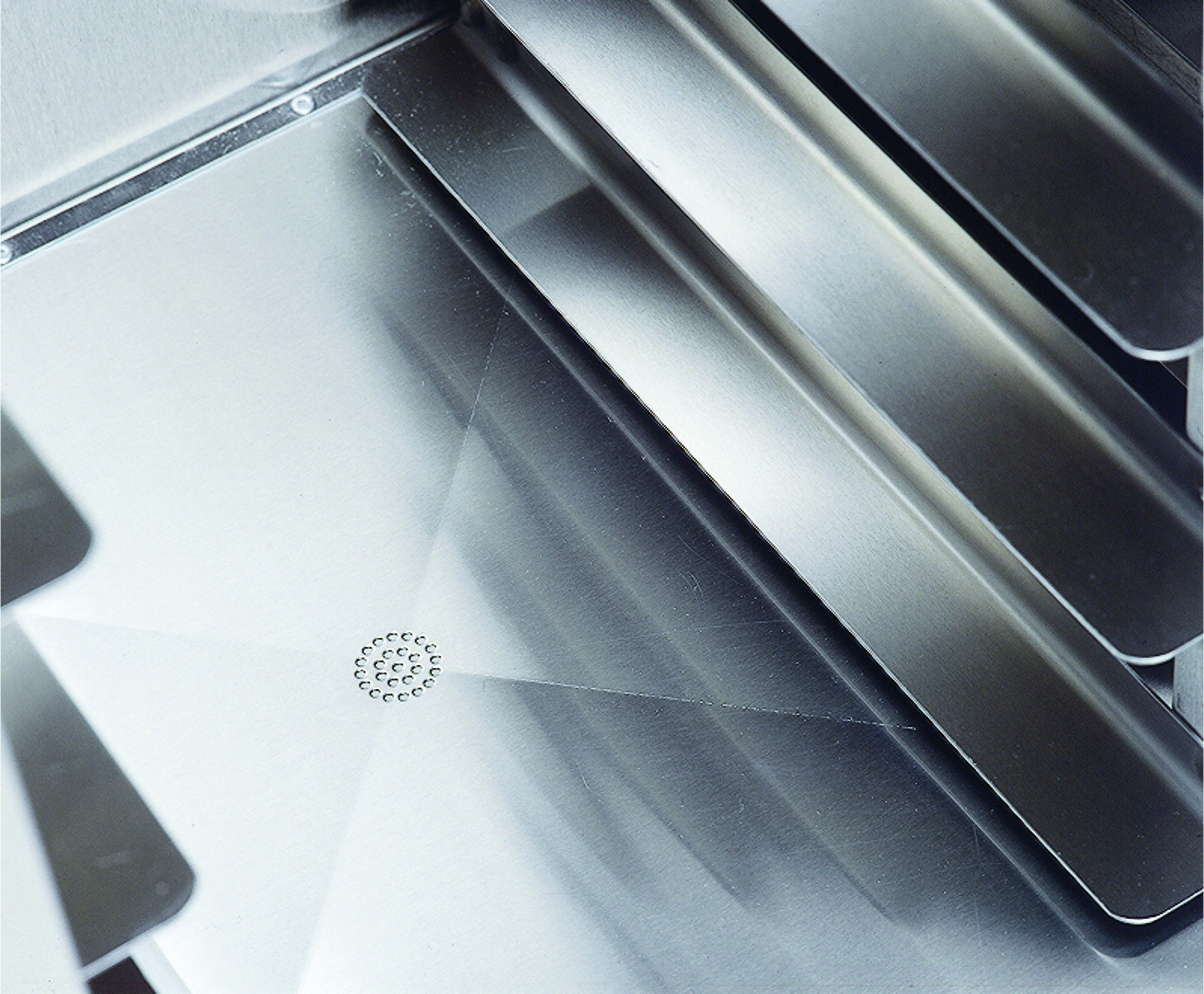 - Stainless steel ledges securely hold 14" x 18" (356 x 457) or 15" x 20" (381 x 508) trays, 2 trays per ledge.