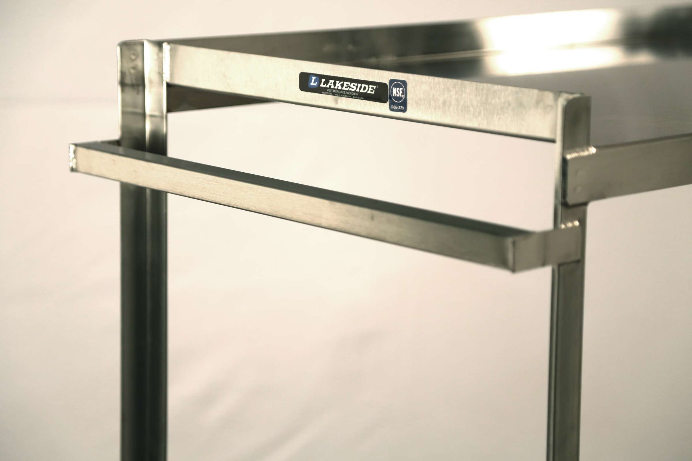 Stainless Steel Utility Carts by Lakeside Manufacturing are ideal for receiving dock and storage room use, loading and moving medical supplies and equipment, and transporting heavy-duty loads up to 1500-Lb over uneven surfaces. The Lakeside 8820 Extreme Duty™ Stainless Steel Utility Cart with (2) shelves measuring 21" x 33" has a weight capacity of 1500-Lb. This utility cart's angled "U"-shape design virtually eliminates stress points in the frame, while its 1” thick square tubing reinforcement under its 14-gauge shelves withstands heavy object drops, even on shelf edge. This Lakeside utility cart's fully welded joints ensure even vulnerable points are as rugged as possible, no pry points. Its no-mark, extra load, cushion tread wheels absorb impact, reducing vibration and strain. The 8820's stainless steel construction with durable full bead welding is easy to clean and sanitize. Resists staining and rusting. Ideal for 24-hour operations to transport heavy loads over various indoor or outdoor surfaces. This model is NSF listed. Modifiable to meet your needs. Superior lead times. Made in the USA.
