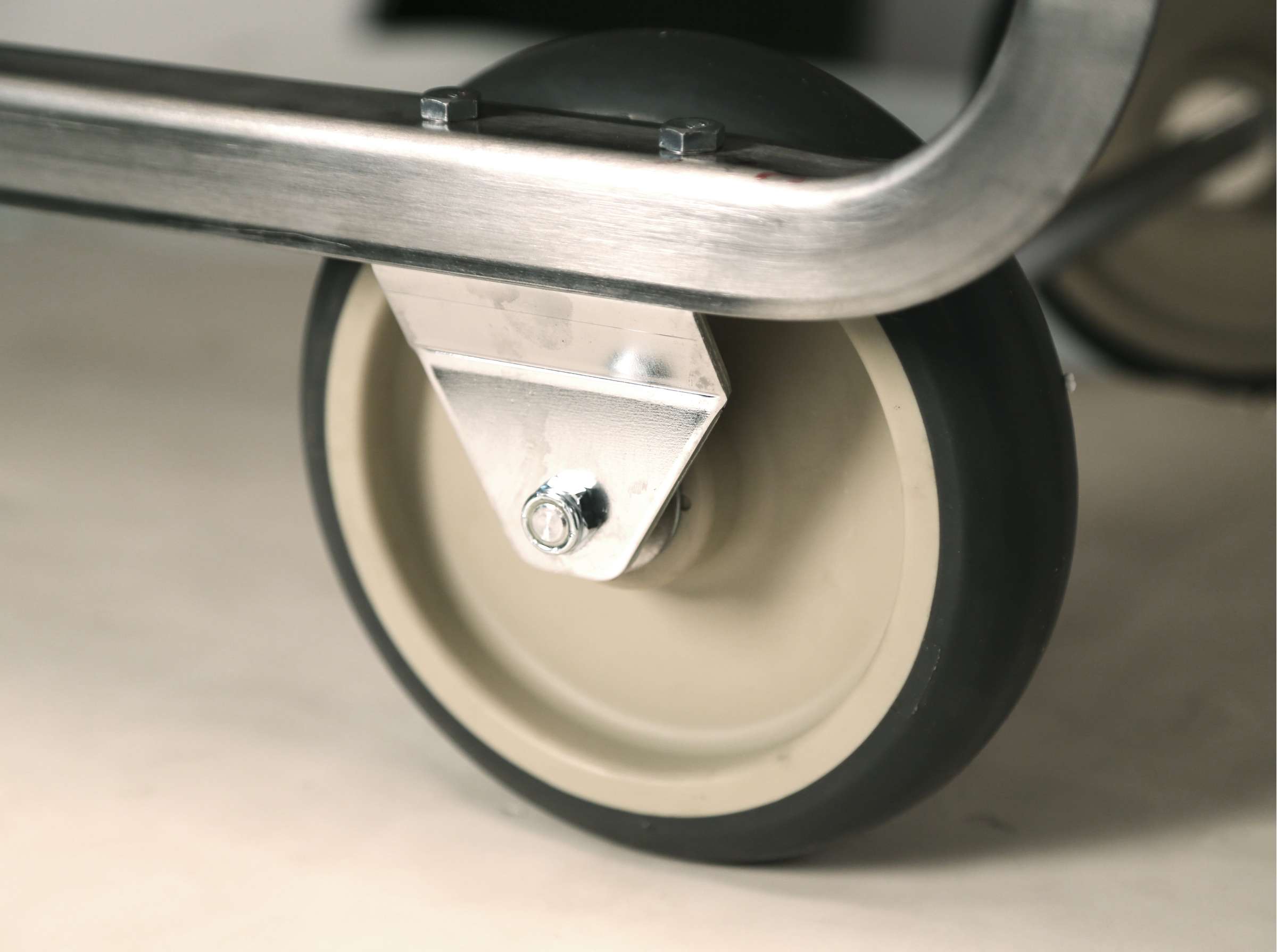 - No-mark, extra load, cushion tread wheels absorb impact, reducing vibration and strain.