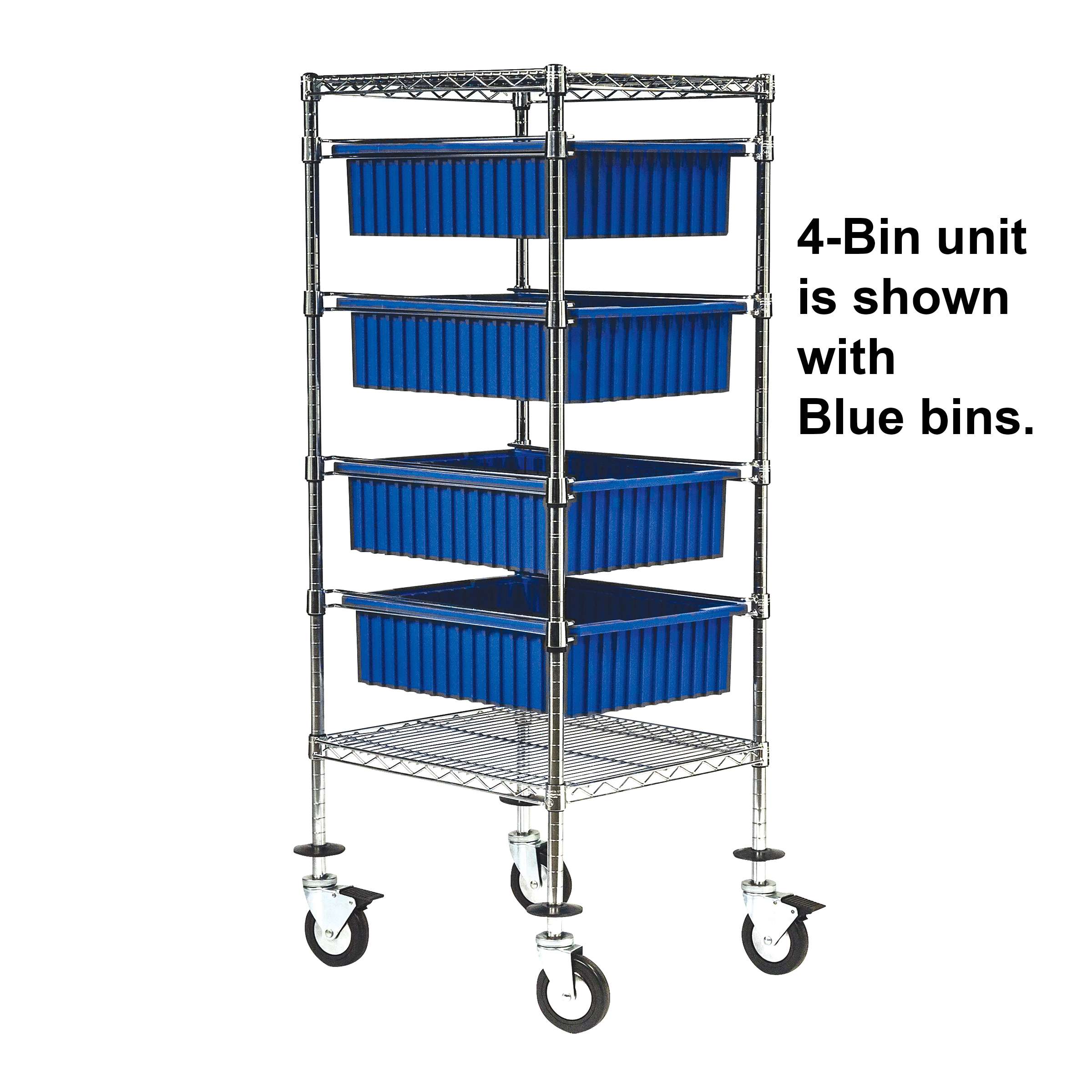 - 74" tall posts with adjustable slides accommodate multiple color coded bins.
