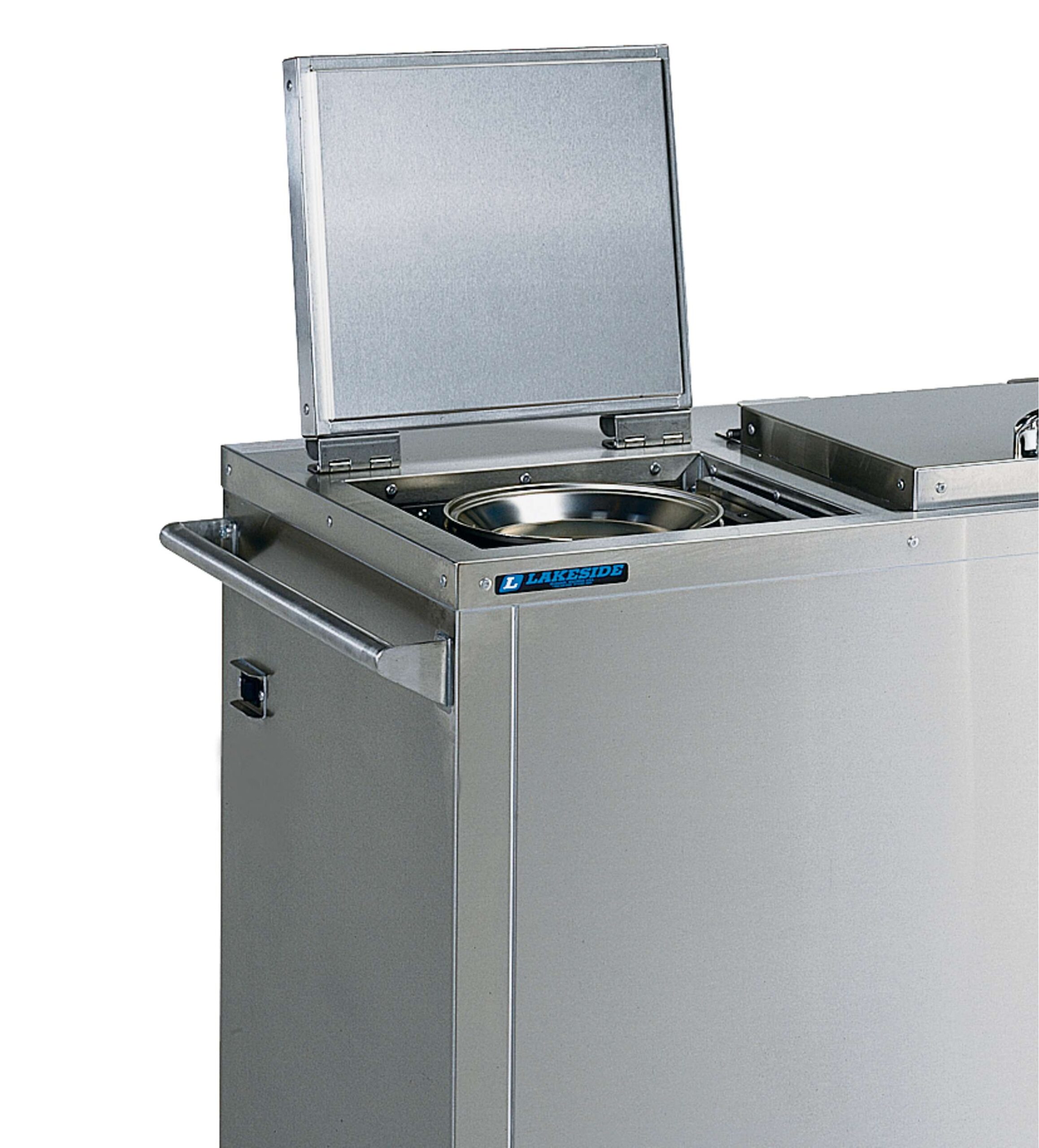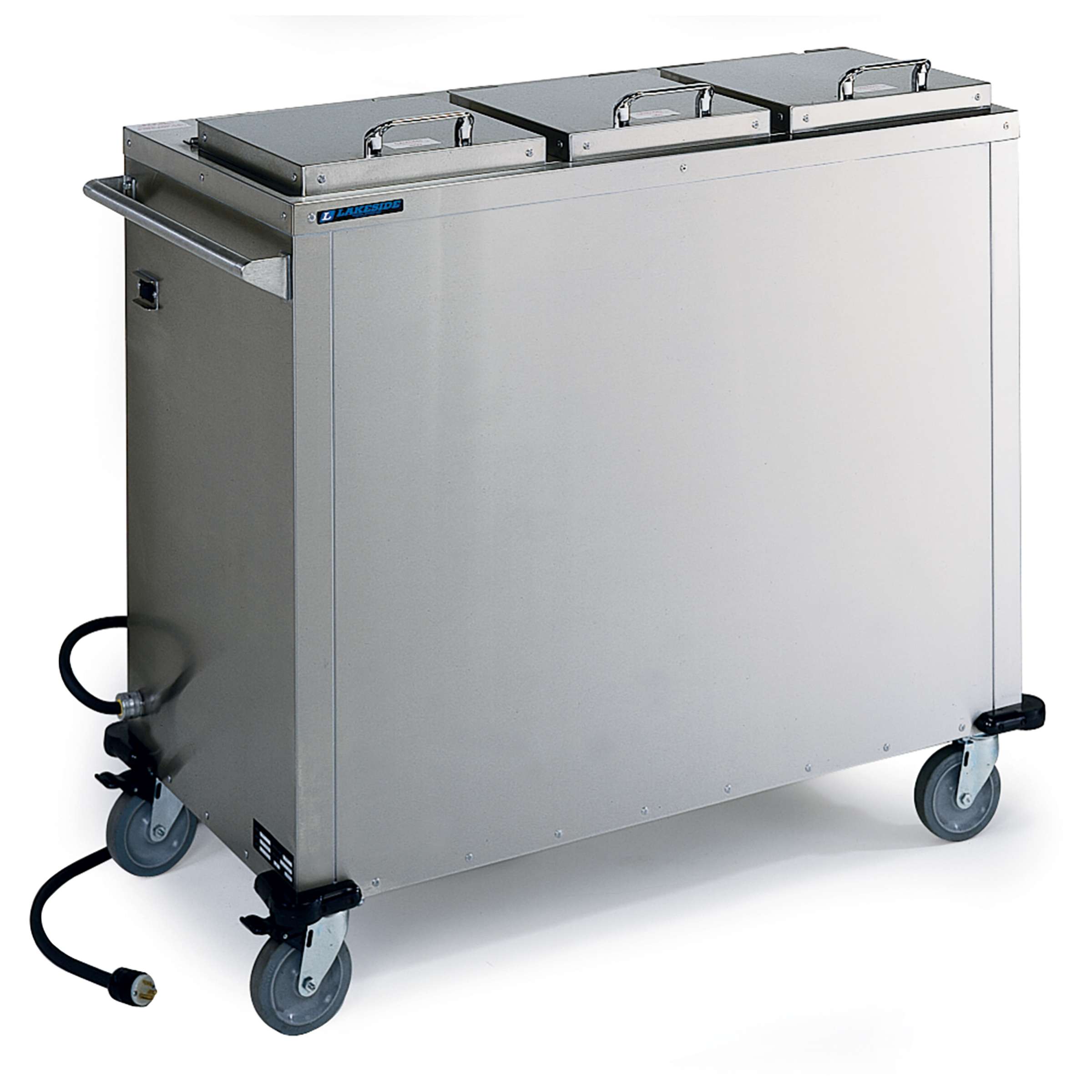 Evenly heat pellets before serving to help maintain safe food temps throughout your meal delivery service. The Lakeside 7502 Mobile Pellet Dispenser has (3) heated NSF self-leveling dispensers for (50) 7 to 10 1/4-in. pellets. The convected forced air heating ensures even heat transfer to all pellets to ensure each will maintain safe food temperatures. This unit’s unique lid design holds in heat without gaskets, so plates and pellets maintain heat. The dispenser cabinet is fully insulated to conserve energy. Single heat control for 3 dispensers in a single compartment. Dispensers are self-lubricating for smooth operation. The unit's thermostat temperature ranges from 250F-290F. All 5” swivel casters, 2 with brake, allow easy maneuverability. The stainless steel construction increases durability, easy to clean and sanitize. Each dispenser accommodates a 27” stack of pellets with a diameter of 7 to 10 1⁄4”.