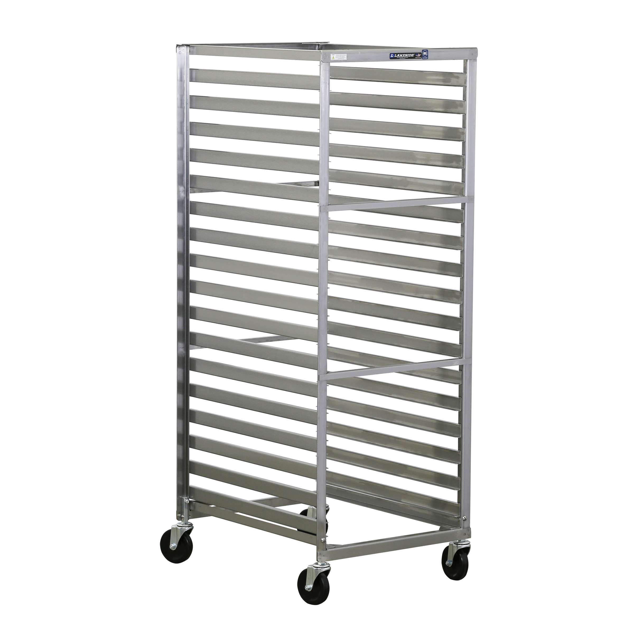 Durability and storage efficiency will have you relying on these racks for years! Economy series narrow opening sheet pan and tray racks include 4" corner stem casters and the choice of channel style ledges or angle style ledges. The Lakeside 125 Sheet Pan Rack has a 35 full-size pan capacity and Angle Style Ledges with 1-7/16" spacing. The Channel Style Ledges are welded to the uprights to withstand continual use, tie bars are also welded to the uprights for added integrity. This unit has 4-inch all swivel, corner mount stem type casters for upright stability and increased maneuverability. All-welded stainless steel construction is easy to clean and sanitize and provides longer life. Ships fully assembled for immediate use right out of the carton, made in the USA. Choose a Channel Style Ledge for extra capacity.