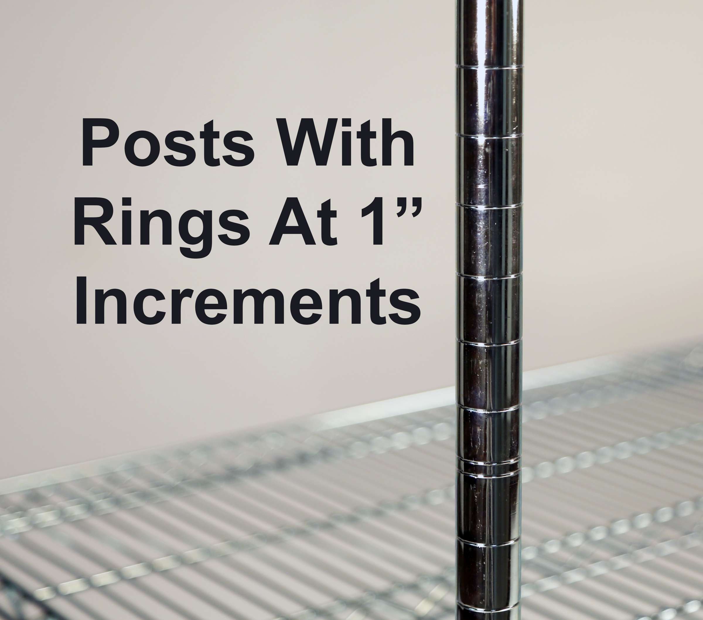 - Chrome plated wire shelves and corner posts are easy to clean and sanitize.